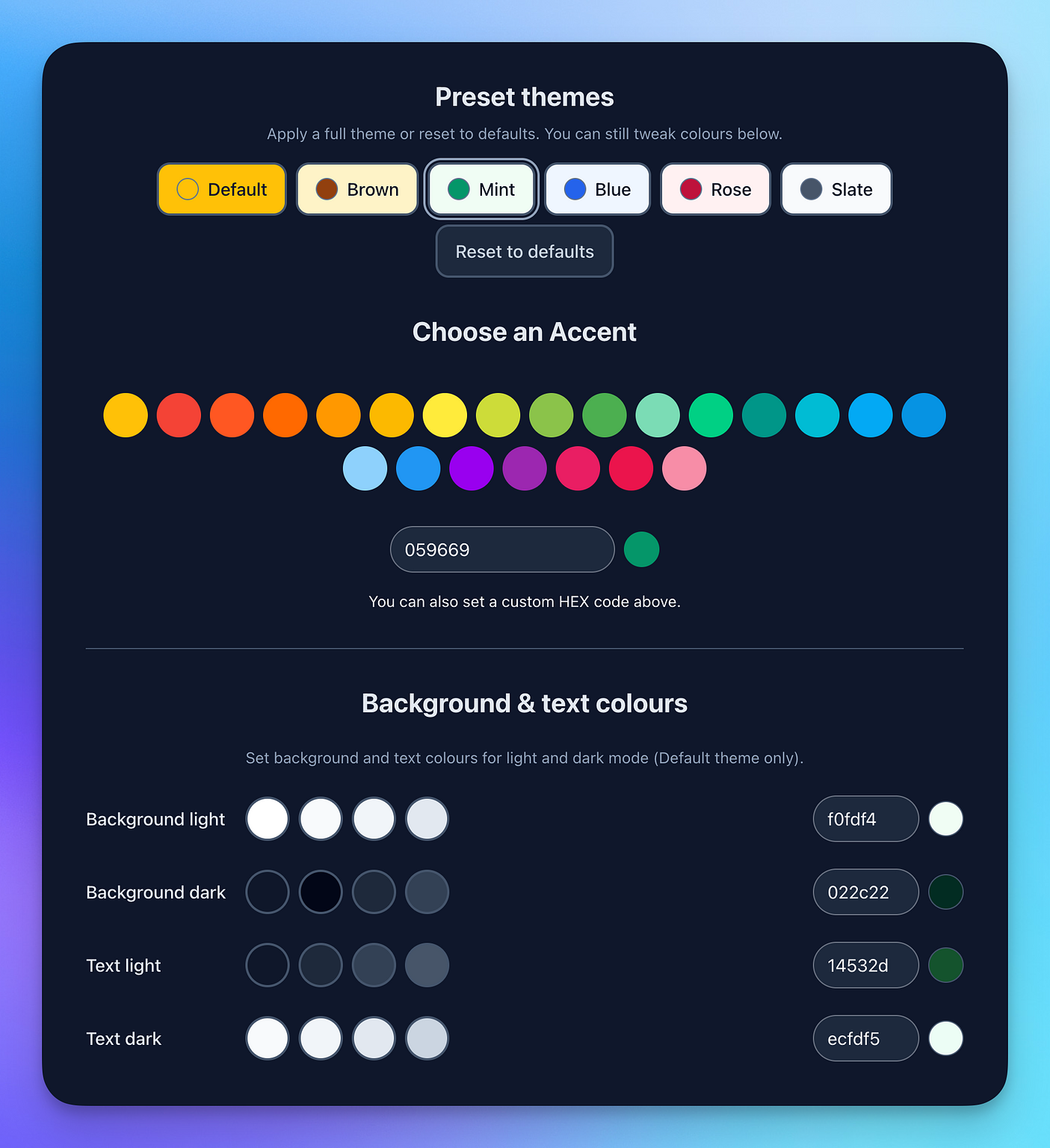 - š Added the ability to tweak some of your theme settings under Appearance in your blog settings. This works for the new default theme only. You can also quickly select some pre-made default styles to get quickly started or reset back to default. I'll expand this as I go.